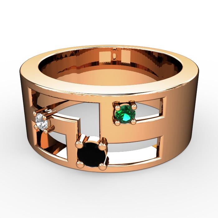 Siyah zirkon, pırlanta ve yeşil kuvars 14 ayar rose altın yüzük (0.036 karat)