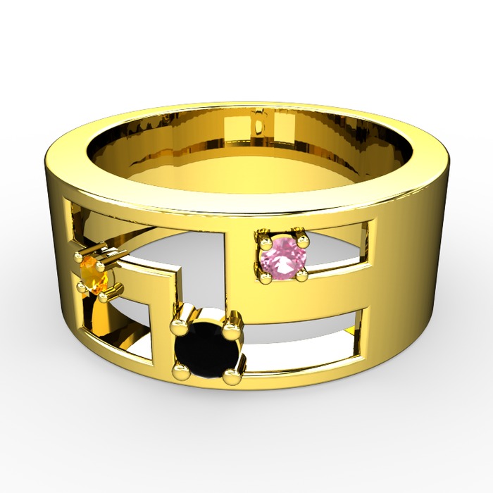 Siyah zirkon, sitrin ve pembe kuvars 925 ayar altın kaplama gümüş yüzük