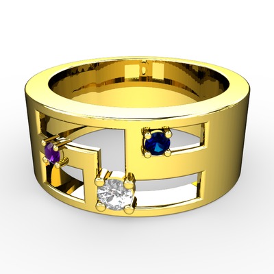 Swarovski, ametist ve lab safir 18 ayar altın yüzük