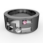 Swarovski, beyaz zirkon ve pembe kuvars 925 ayar siyah rodyum kaplama gümüş yüzük