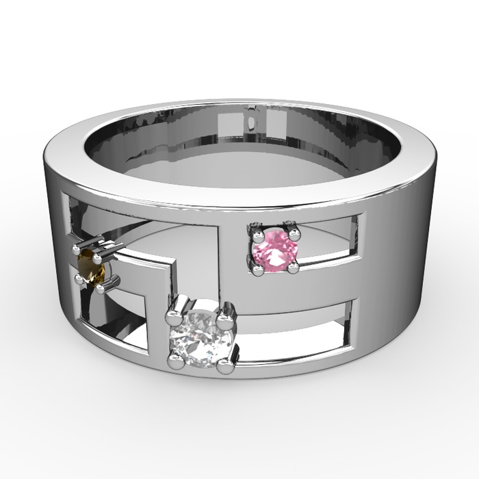 Swarovski, dumanlı kuvars ve pembe kuvars 8 ayar beyaz altın yüzük