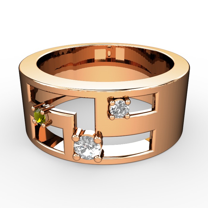 Swarovski, peridot ve beyaz zirkon 8 ayar rose altın yüzük