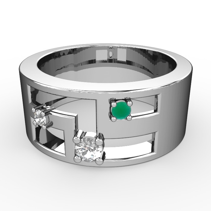 Swarovski, pırlanta ve kök zümrüt 14 ayar beyaz altın yüzük (0.036 karat)