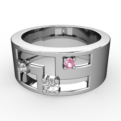 Swarovski, pırlanta ve pembe kuvars 925 ayar gümüş yüzük (0.036 karat)