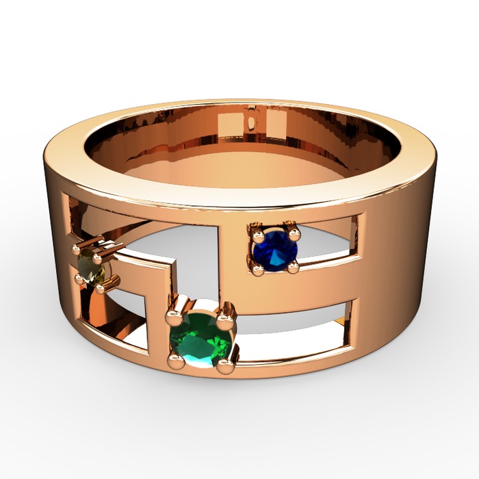 Yeşil kuvars, dumanlı kuvars ve lab safir 14 ayar rose altın yüzük