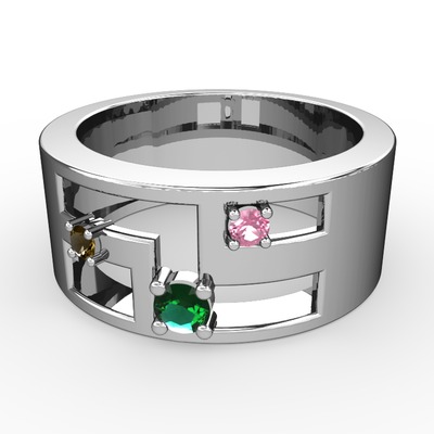 Yeşil kuvars, dumanlı kuvars ve pembe kuvars 18 ayar beyaz altın yüzük