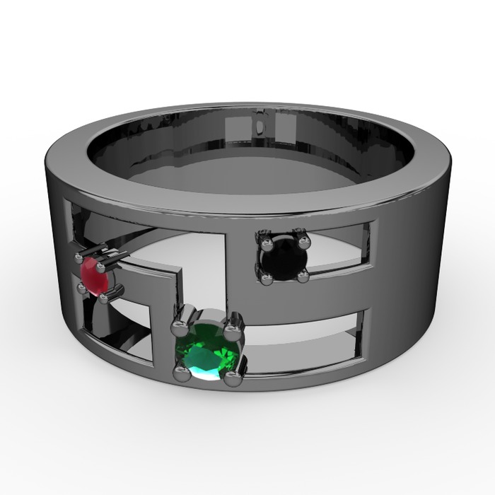 Yeşil kuvars, kök yakut ve siyah zirkon 925 ayar siyah rodyum kaplama gümüş yüzük