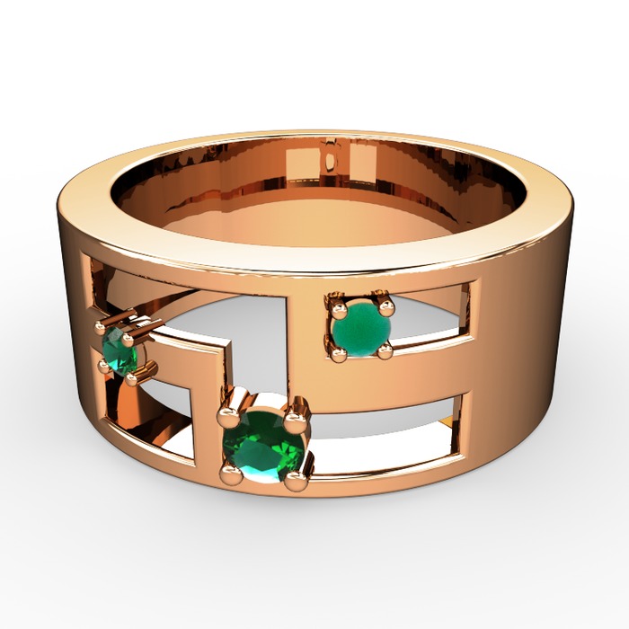 Yeşil kuvars ve kök zümrüt 8 ayar rose altın yüzük