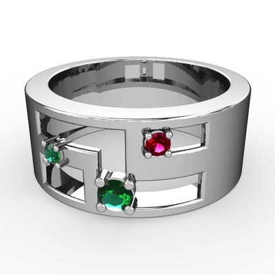 Yeşil kuvars ve rodolit garnet 14 ayar beyaz altın yüzük