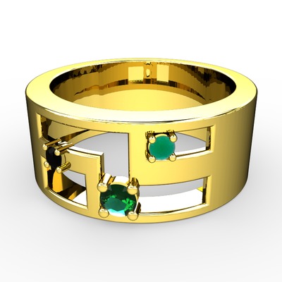 Yeşil kuvars, siyah zirkon ve kök zümrüt 925 ayar altın kaplama gümüş yüzük