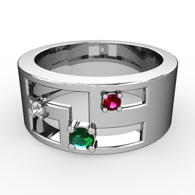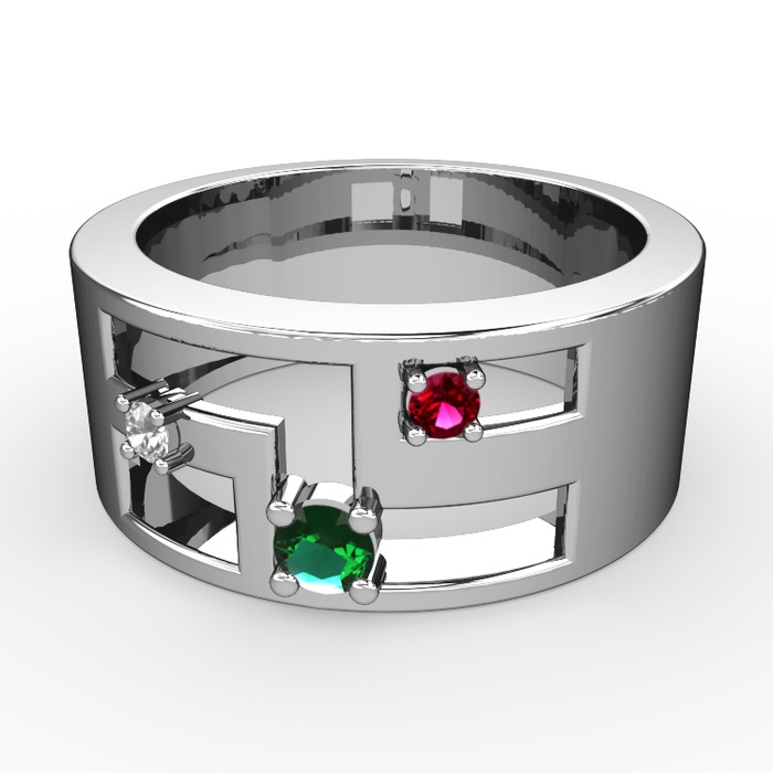 Yeşil kuvars, swarovski ve rodolit garnet 18 ayar beyaz altın yüzük