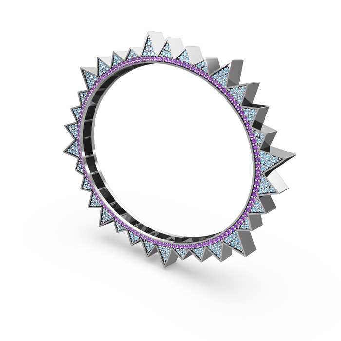 Akuamarin ve ametist 18 ayar beyaz altın bilezik