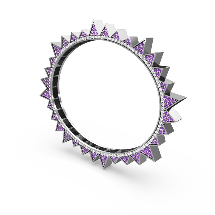 Ametist ve beyaz zirkon 14 ayar beyaz altın bilezik