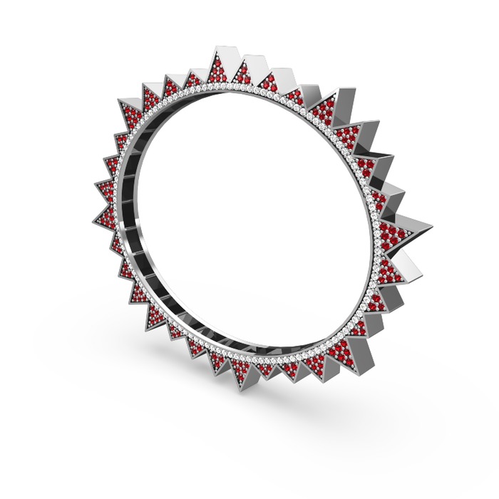 Garnet ve beyaz zirkon 18 ayar beyaz altın bilezik