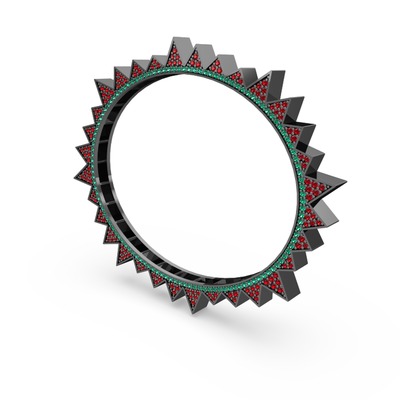 Garnet ve yeşil kuvars 925 ayar siyah rodyum kaplama gümüş bilezik