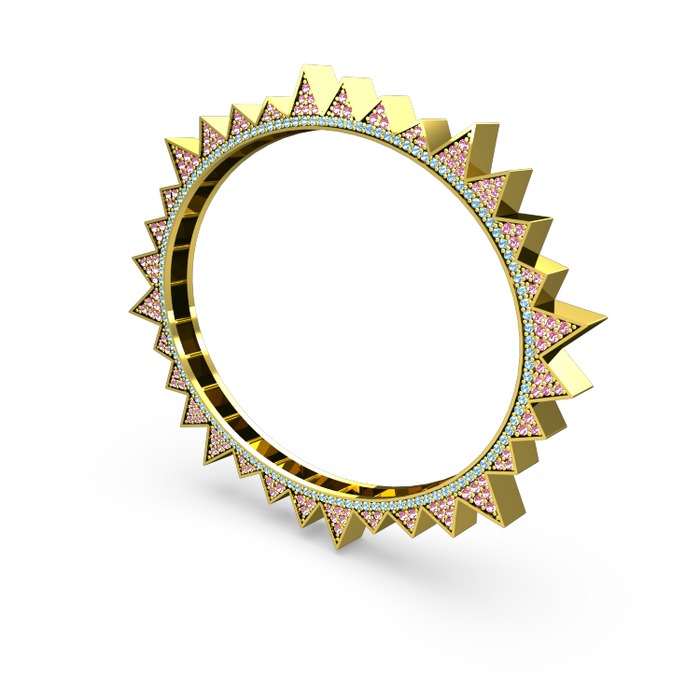 Pembe kuvars ve akuamarin 14 ayar altın bilezik