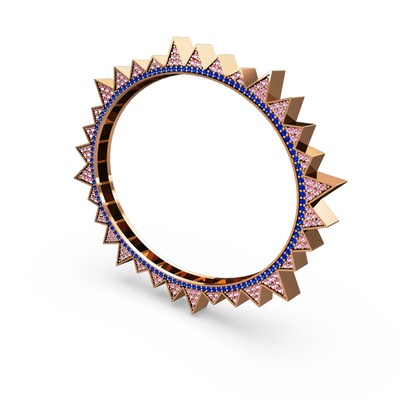 Pembe kuvars ve lab safir 14 ayar rose altın bilezik