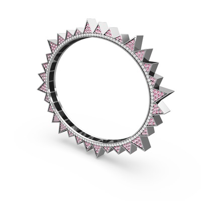 Pembe kuvars ve pırlanta 8 ayar beyaz altın bilezik (1.74 karat)