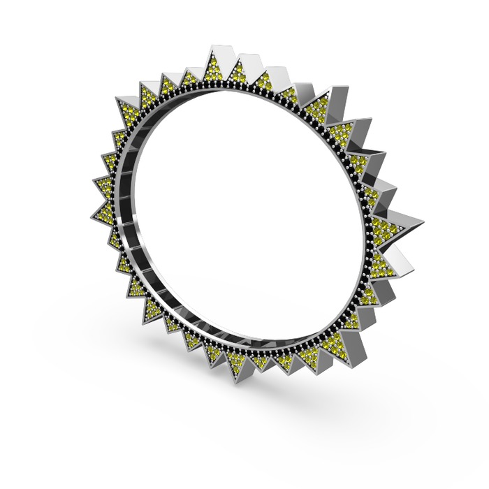 Peridot ve siyah zirkon 14 ayar beyaz altın bilezik