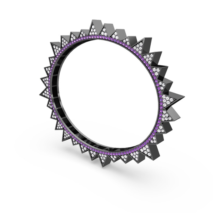 Pırlanta ve ametist 925 ayar siyah rodyum kaplama gümüş bilezik (3.52 karat)