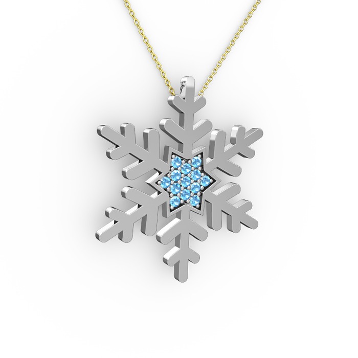 Akuamarin 8 ayar beyaz altın kolye (40 cm altın rolo zincir)