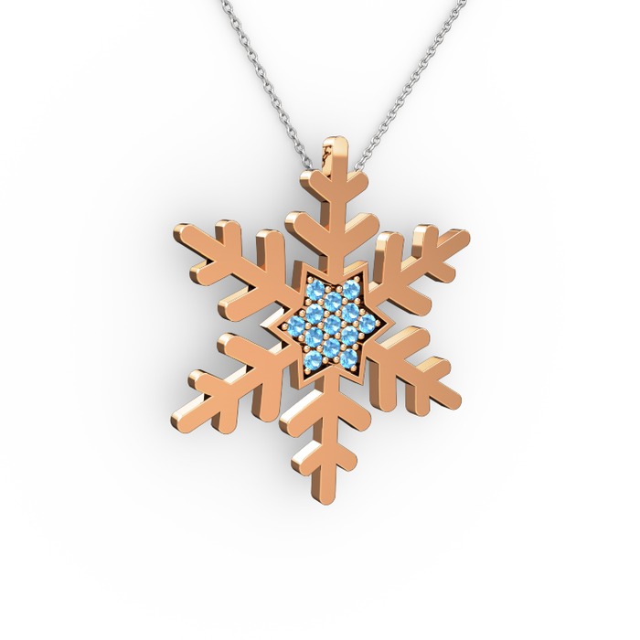 Akuamarin 925 ayar rose altın kaplama gümüş kolye (40 cm beyaz altın rolo zincir)