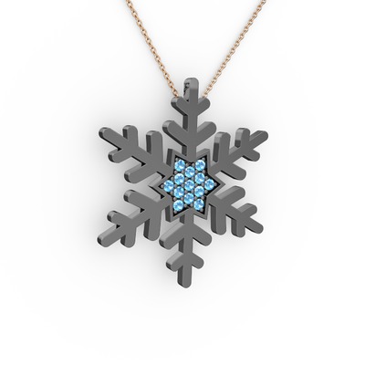 Akuamarin 925 ayar siyah rodyum kaplama gümüş kolye (40 cm gümüş rolo zincir)