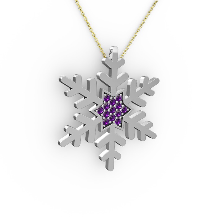 Ametist 14 ayar beyaz altın kolye (40 cm altın rolo zincir)