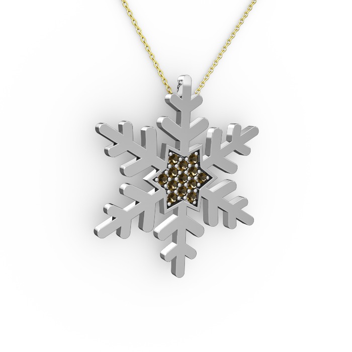 Dumanlı kuvars 18 ayar beyaz altın kolye (40 cm altın rolo zincir)