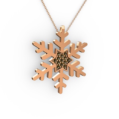 Dumanlı kuvars 18 ayar rose altın kolye (40 cm gümüş rolo zincir)
