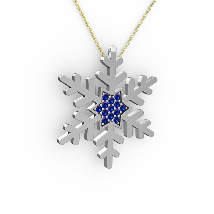 Lab safir 14 ayar beyaz altın kolye (40 cm altın rolo zincir)