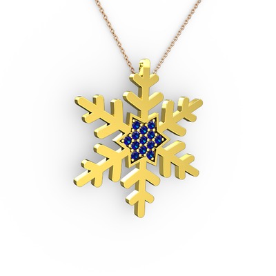 Lab safir 18 ayar altın kolye (40 cm rose altın rolo zincir)