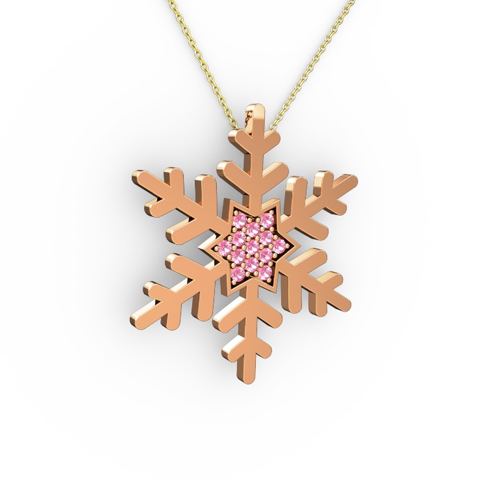 Pembe kuvars 14 ayar rose altın kolye (40 cm altın rolo zincir)