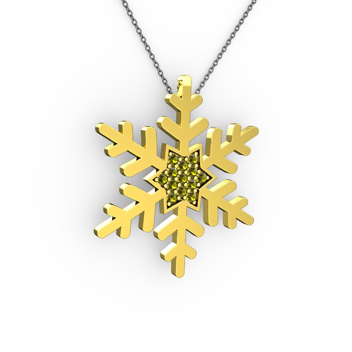 Peridot 18 ayar altın kolye (40 cm gümüş rolo zincir)