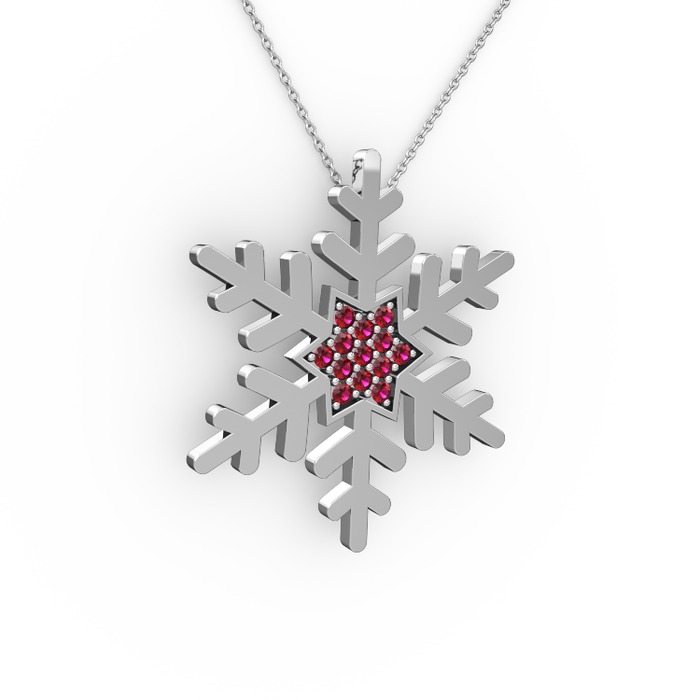 Rodolit garnet 925 ayar gümüş kolye (40 cm beyaz altın rolo zincir)