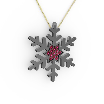 Rodolit garnet 925 ayar siyah rodyum kaplama gümüş kolye (40 cm altın rolo zincir)
