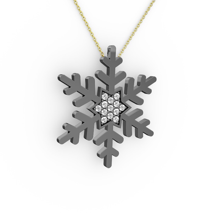 Swarovski 925 ayar siyah rodyum kaplama gümüş kolye (40 cm altın rolo zincir)