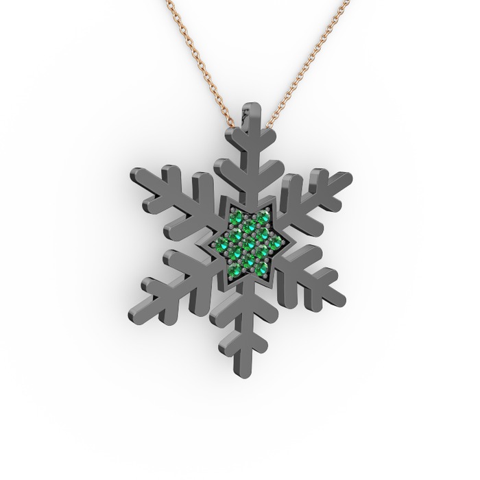 Yeşil kuvars 925 ayar siyah rodyum kaplama gümüş kolye (40 cm rose altın rolo zincir)