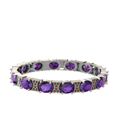Ametist ve dumanlı kuvars 8 ayar beyaz altın bilezik