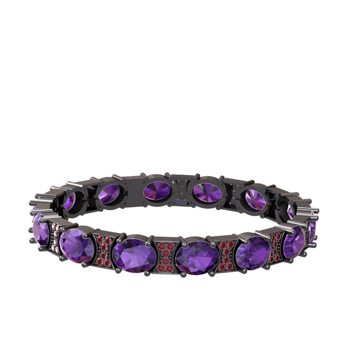 Ametist ve kök yakut 925 ayar siyah rodyum kaplama gümüş bilezik