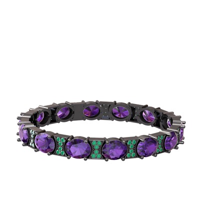Ametist ve kök zümrüt 925 ayar siyah rodyum kaplama gümüş bilezik