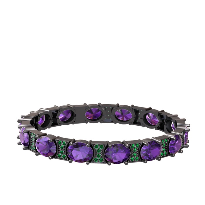 Ametist ve yeşil kuvars 925 ayar siyah rodyum kaplama gümüş bilezik