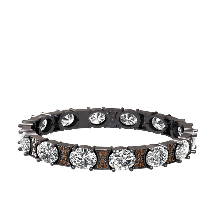 Beyaz zirkon ve dumanlı kuvars 925 ayar siyah rodyum kaplama gümüş bilezik