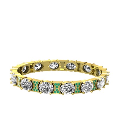 Beyaz zirkon ve kök zümrüt 925 ayar altın kaplama gümüş bilezik