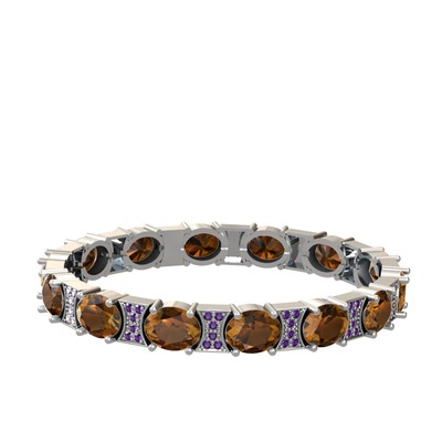 Dumanlı kuvars ve ametist 925 ayar gümüş bilezik