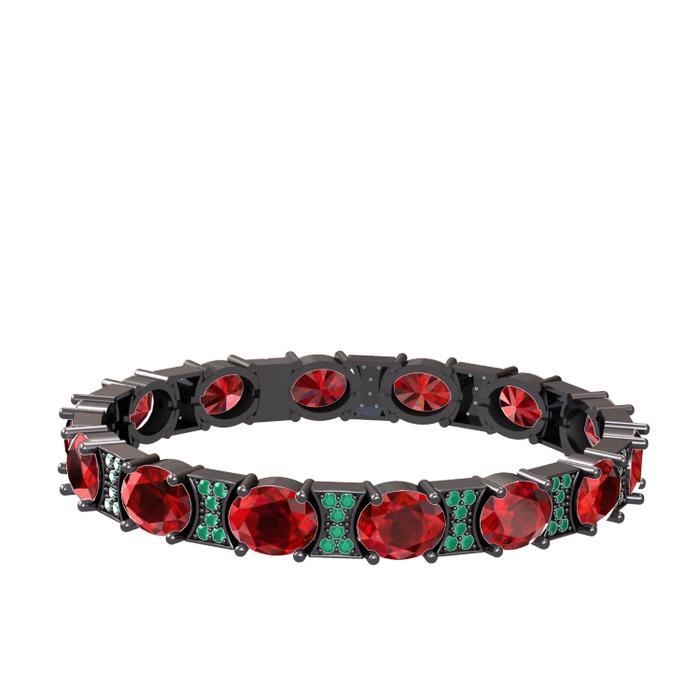 Garnet ve kök zümrüt 925 ayar siyah rodyum kaplama gümüş bilezik