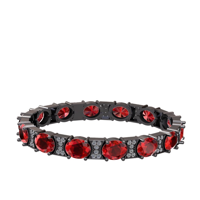 Garnet ve pırlanta 925 ayar siyah rodyum kaplama gümüş bilezik (1.95 karat)