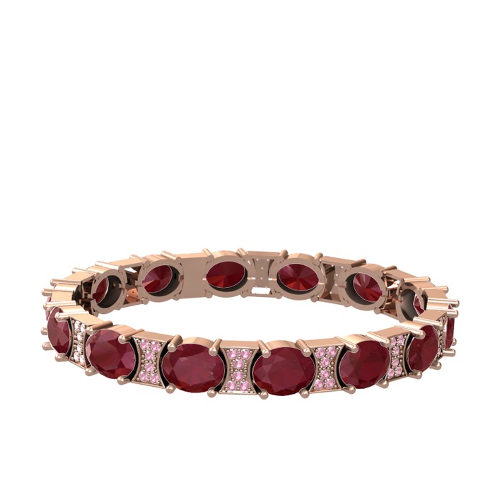 Kök yakut ve pembe kuvars 8 ayar rose altın bilezik