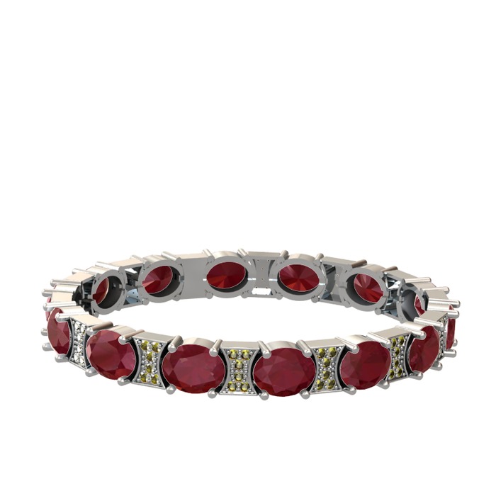 Kök yakut ve peridot 8 ayar beyaz altın bilezik