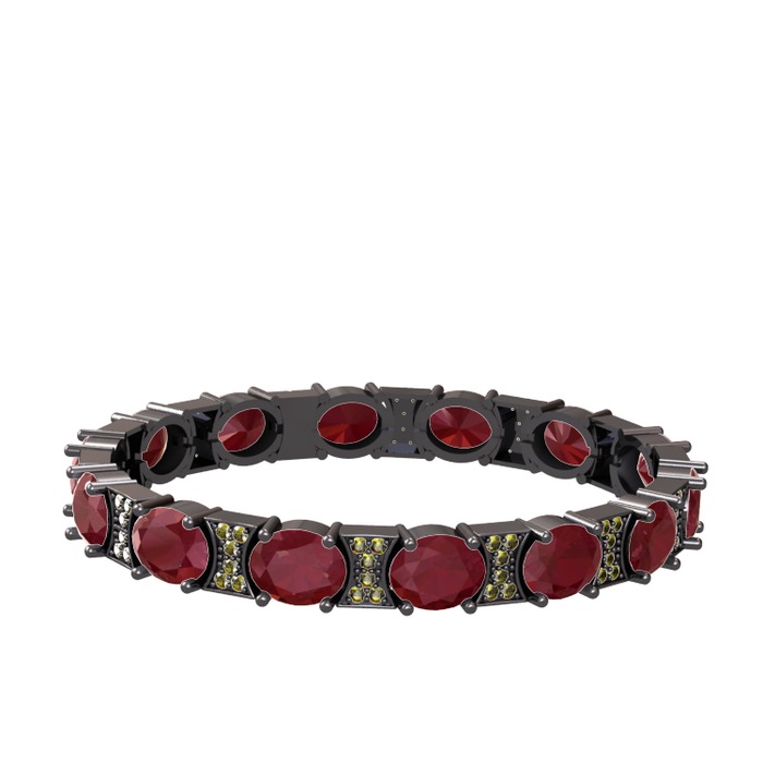 Kök yakut ve peridot 925 ayar siyah rodyum kaplama gümüş bilezik
